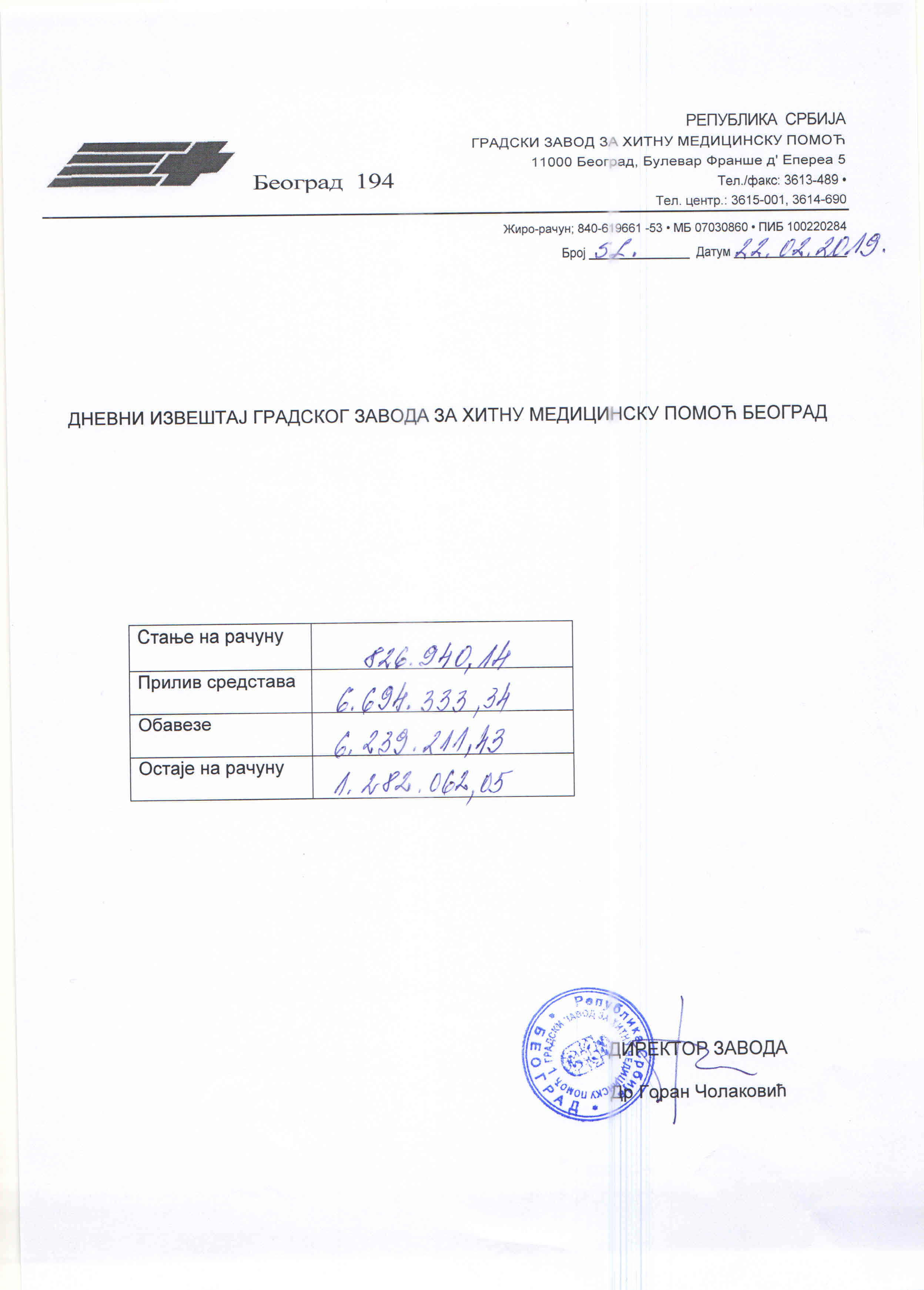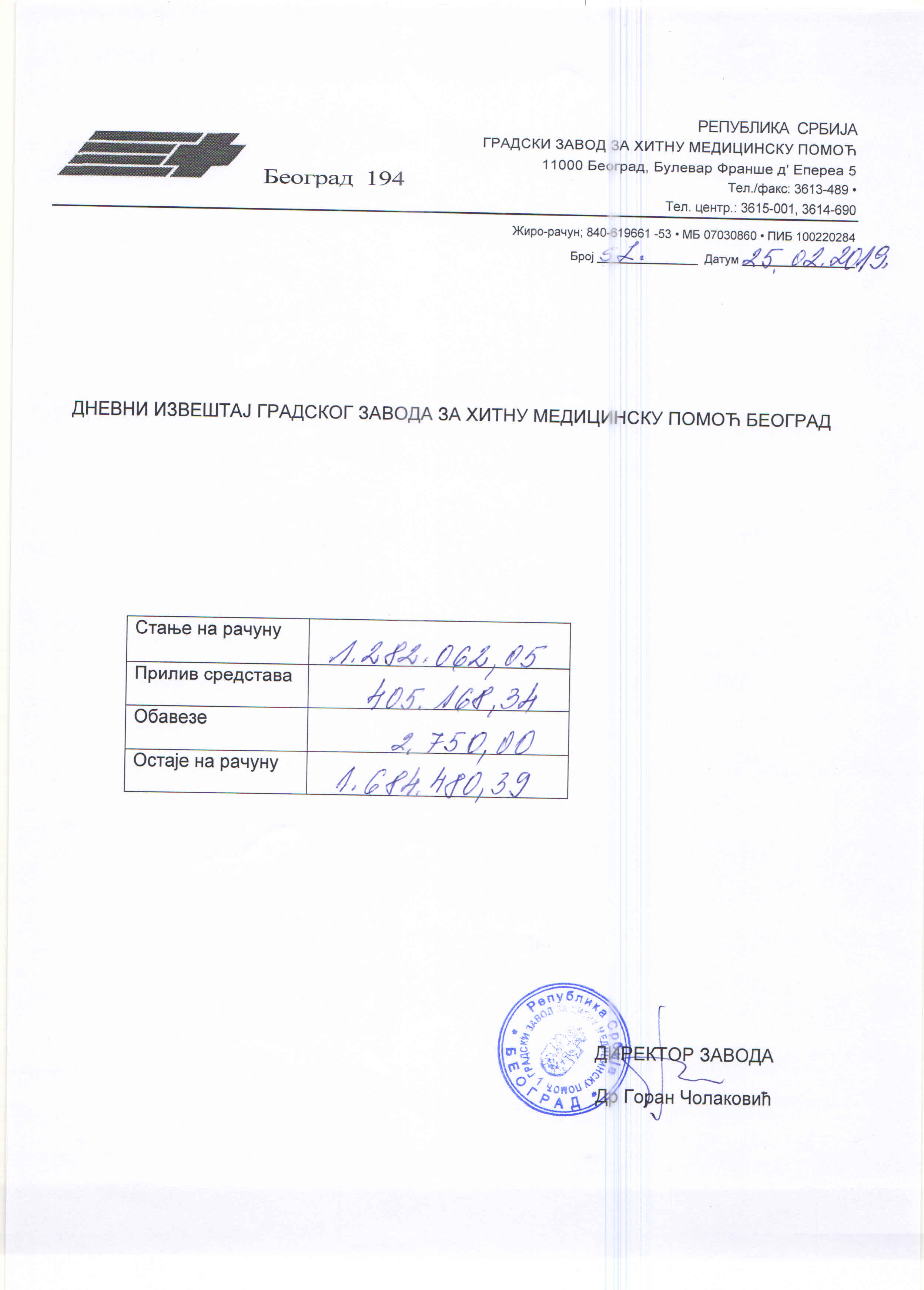 Финансијски дневни извештаји ГЗЗХМП Београд за период 11 - 19 02 2019.pdf